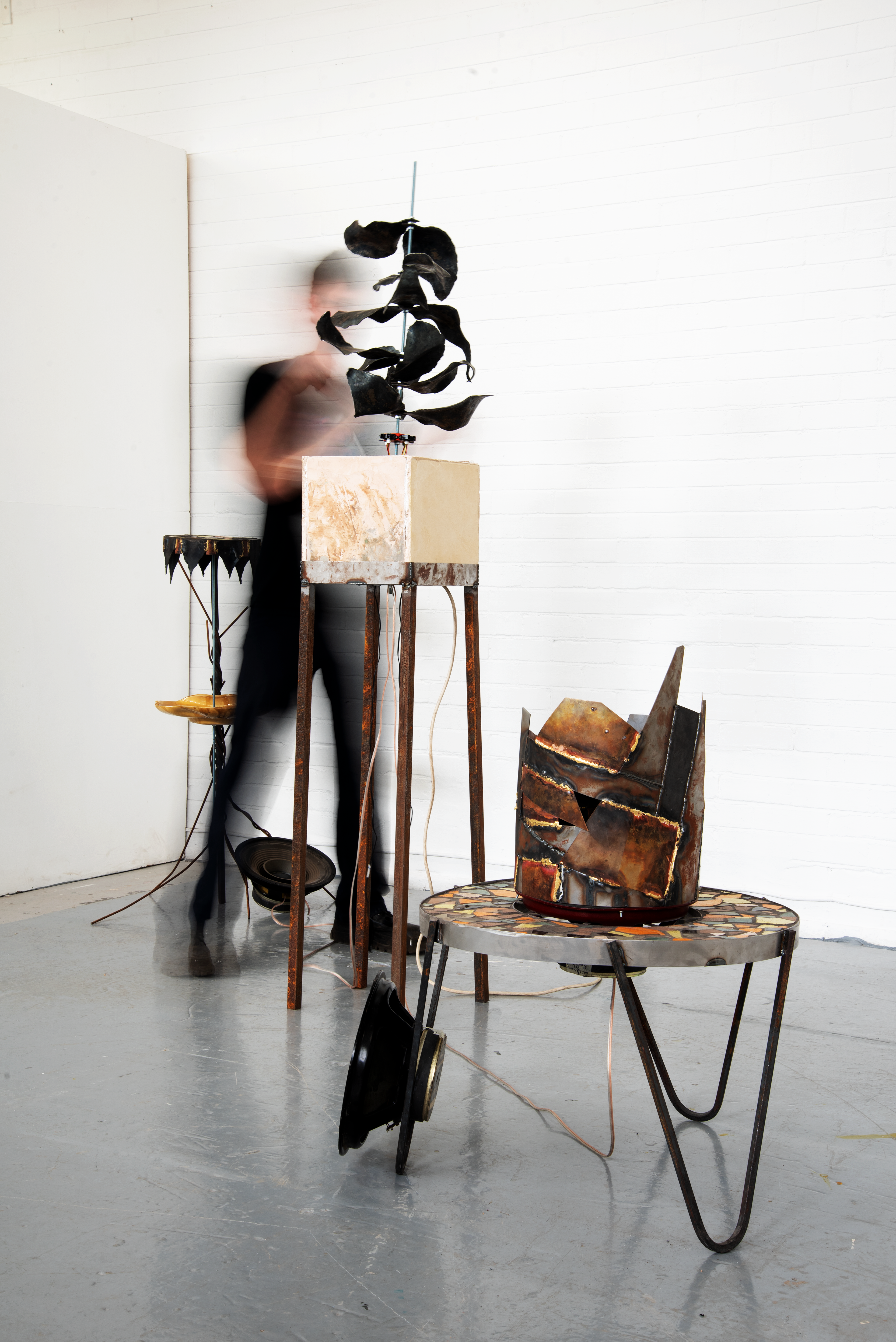 Interactive sculptures imbedded with sensors and V/A effects technology. These objects come to life to share the mystical and transcendental sounds of nature and machine combined.